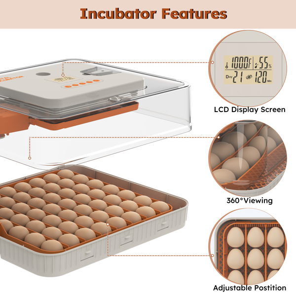 56 Egg Incubator With Automatic Turning & Humidity Control-Digital Poultry Hatcher For Chicken, Duck, And Goose Eggs - Built-in Egg Candler & Auto Water Refill, 360 Degrees Clear View